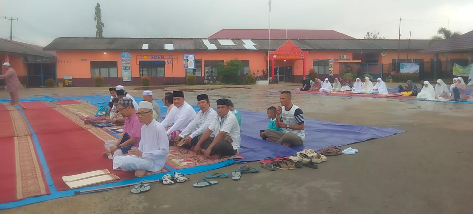 Ribuan jemaah Salat Ied memadati halaman masjid yang berada didalam kampus UMP yang terletak di Jalan A Yani Kelurahan 13 Ulu Kecamatan SU II Palembang, sejak pukul 06.30 WIB.