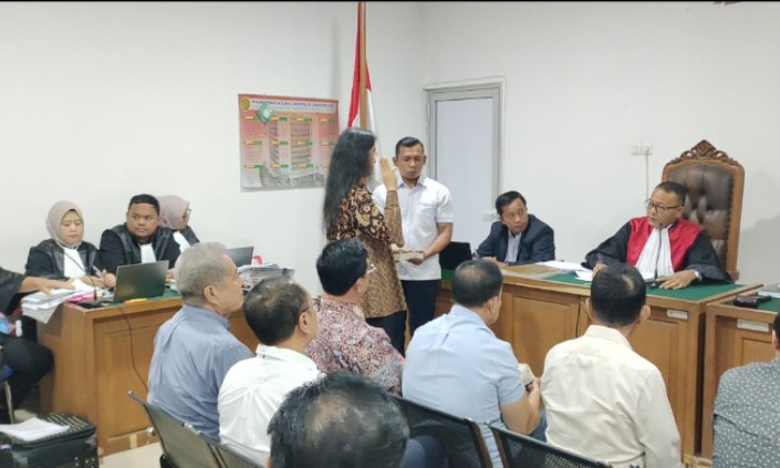 Sebelum memberikan keterangan sebagai saksi, eks Kadis Pariwisata Sumsel Irene Camelyn Sinaga angkat sumpah dihadapan majelis hakim--Fadli