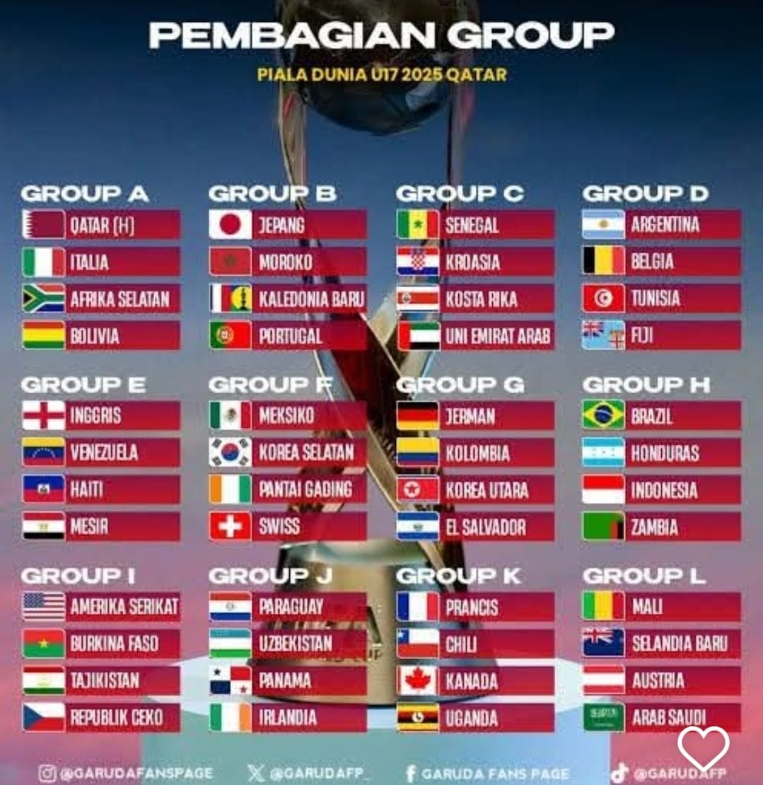 Mesin Tempur Sudah Hidup: Nova Arianto Pastikan Timnas U-17 Ready 100%. Ini Pembagian grup Piala Dunia U-17 2025 Qatar--