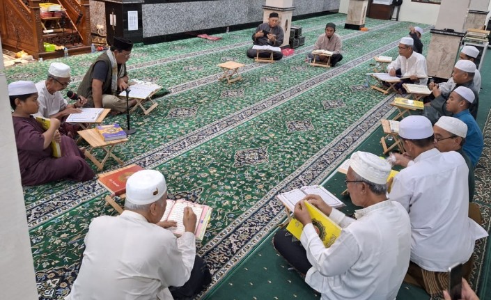 Suasana didalam masjid diisi dengan kegiatan tadarrus membaca Alquran selama bulan puasa Ramadan--Doc sumek.co